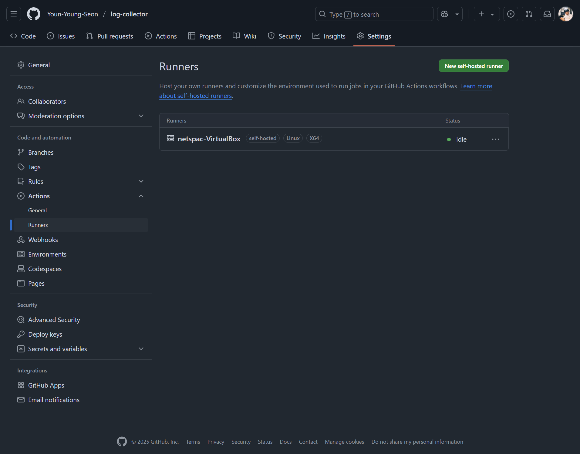 결국 VM 내부에 Self-hosted Runner를 설치하는 방식으로 CI/CD를 구성.