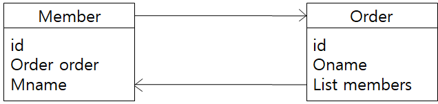 이렇게 되면 회원 객체의 값이 변경 되었을 때 주문 객체의 값 또한 변경되어야 하고 그 반대의 경우도 마찬가지이다. 이건 객체지향적이라고 할 수 없다. 하지만 객체는 참조를 이용하여 연관관계를 지정할 수 있다.