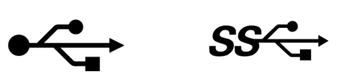 왼쪽 로고와 같은 부분은 USB 2.0, 오른쪽 로고와 같은 부분은 USB 3.0 입니다.