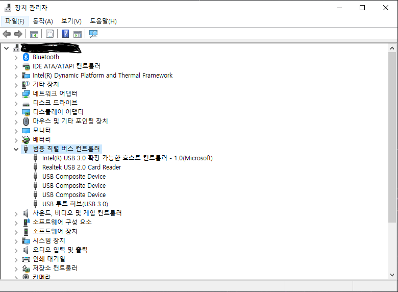 "범용 직렬 버스 컨트롤러" 항목에 보면