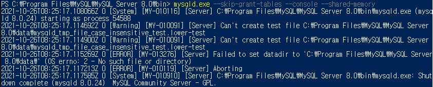 2021.09.01 - [에러] - [Mysql] Access denied for user (using password: yes) 에러 발생