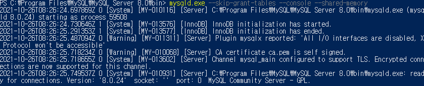 mysqld.exe --skip-grant-tables --console --shared-memory