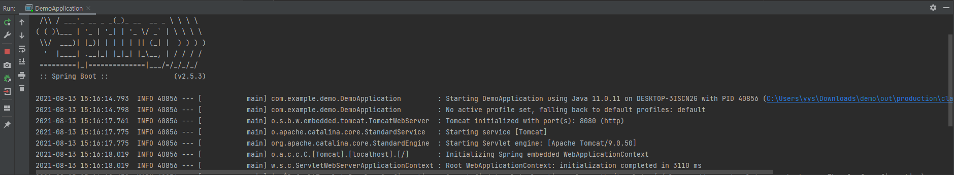 빌드가 성공적으로 완료되면 해당경로에 있는 클래스안의 메인메서드를 실행하면 서버가 올라간다.
