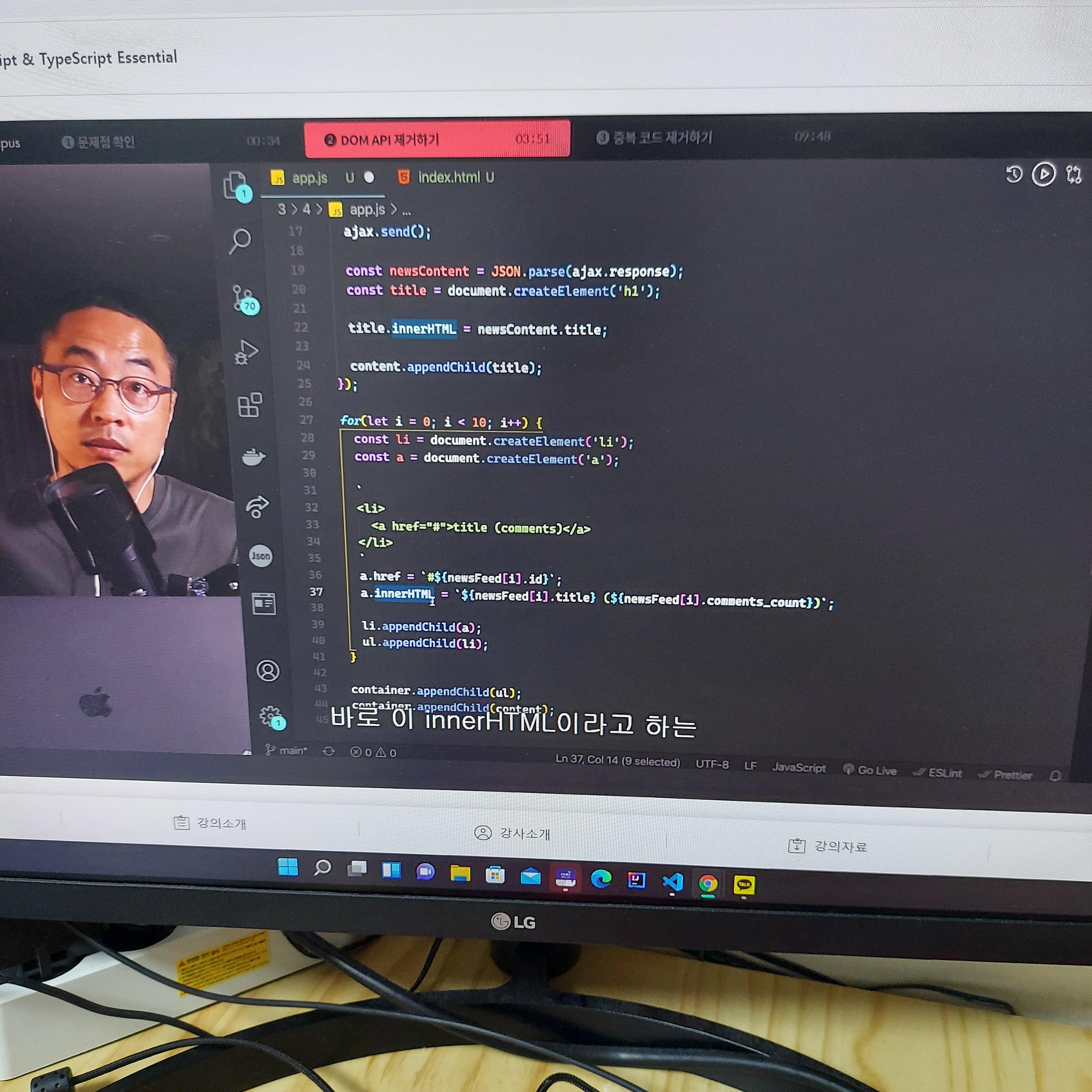 기존의 DOM API 구조를 innerHTML을 통한 문자열 형태로 바꿨다. 이렇게 코드를 변경함으로 HTML구조와 코드의 구조를 알아보기 쉬워지고 기능이 추가되거나 코드의 양이 많아진다 하더라도 복잡도가 늘어난 것이 아니기 때문에 수월하게 내용을 파악할 수 있다.